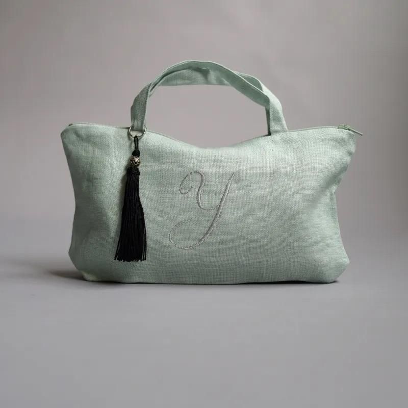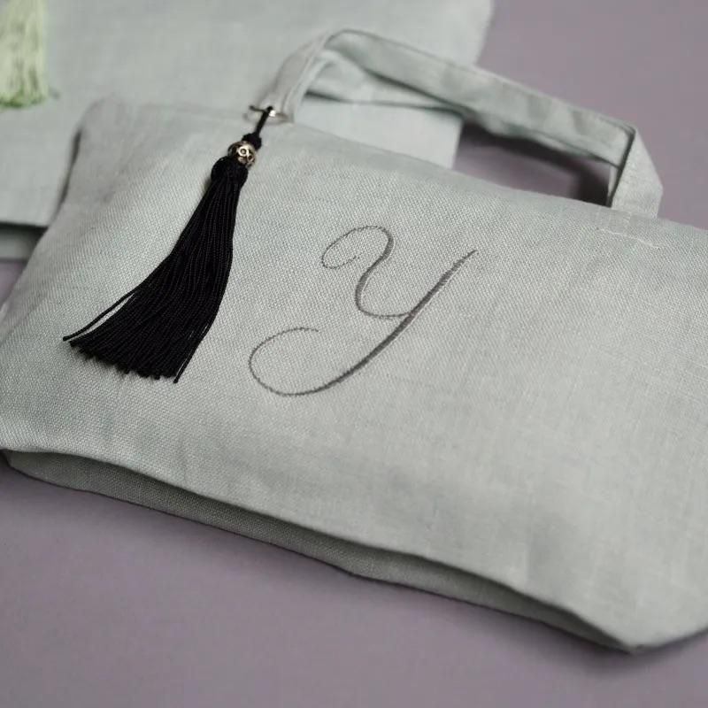 お好みでイニシャル刺繍(税抜1,200円)をシルバーグレー刺繍でお入れすることができます。