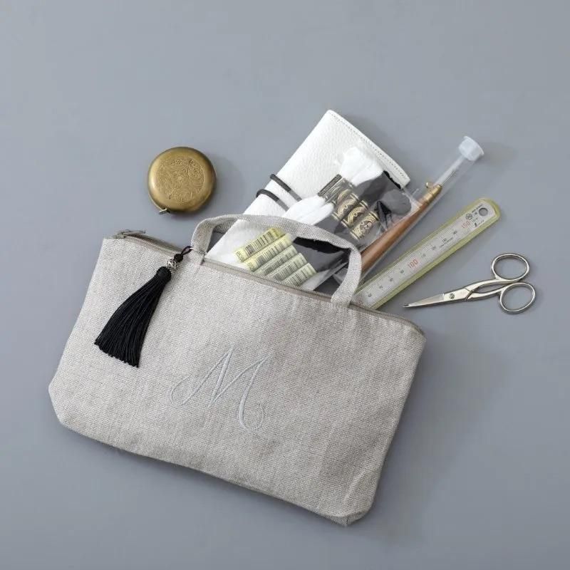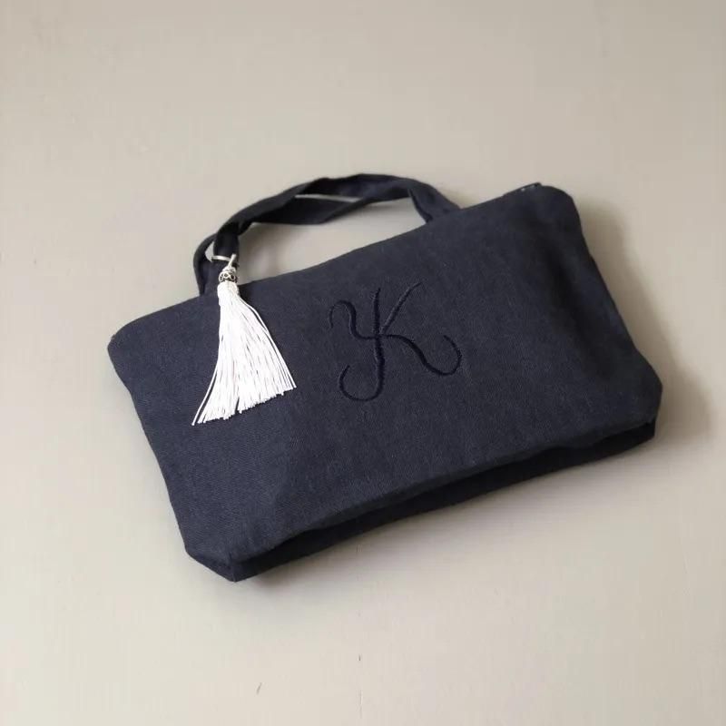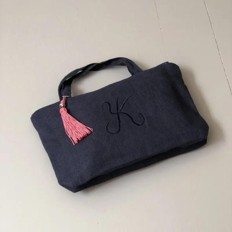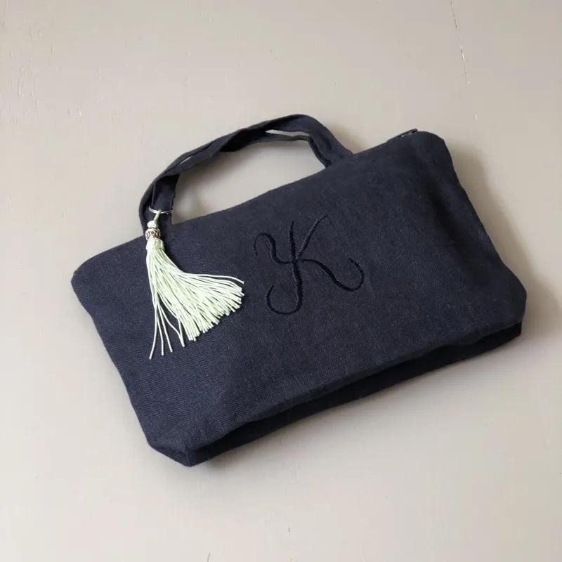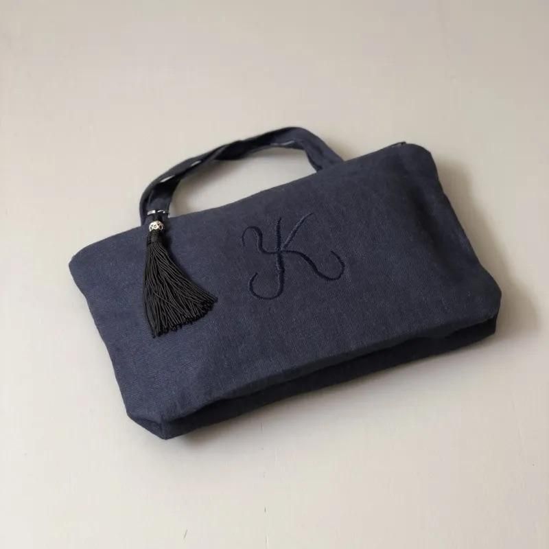 お好みでイニシャル刺繍(税抜1,200円)をシルバーグレー刺繍(11/20より色を変更いたしました)でお入れすることができます。