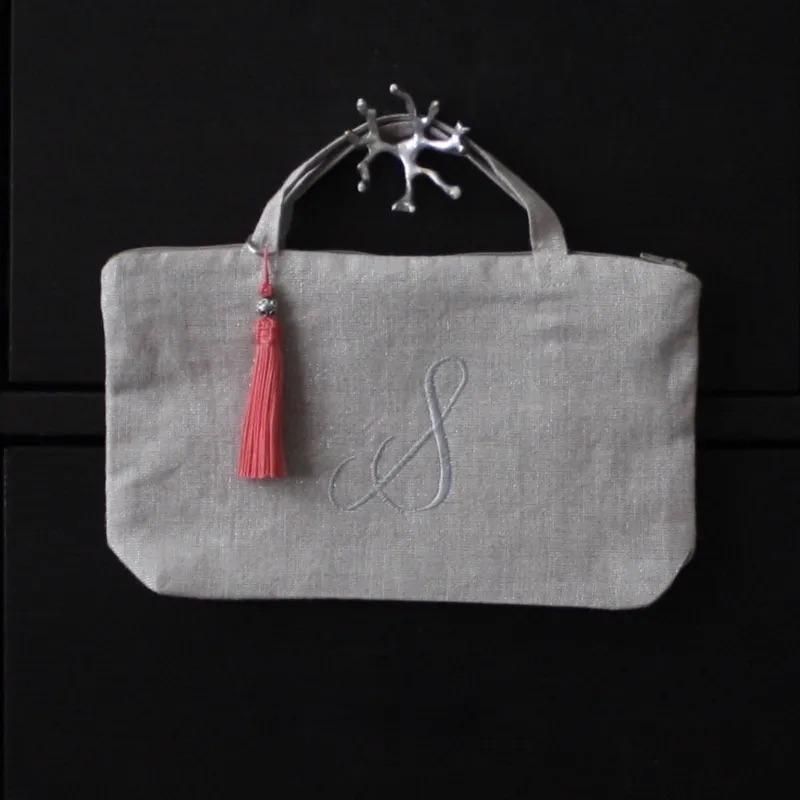 お好みでイニシャル刺繍(税抜1,200円)をシルバーグレー刺繍でお入れすることができます。